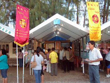 本届火树节已是塞班岛法轮大法协会自二零零零年起参加的第八届当地传统节日盛会。这次庆典活动中,塞班岛大法弟子们在展棚内展出了以法轮功真相为题材的“真、善、忍画展”的多幅作品。法轮功学员并向过往游人发放英文真相资料和精美的折纸莲花;还给每一个经过的中国人讲真相和劝三退,有二十六位明白真相的中国人当场声明了三退(退党、退团、退队)。