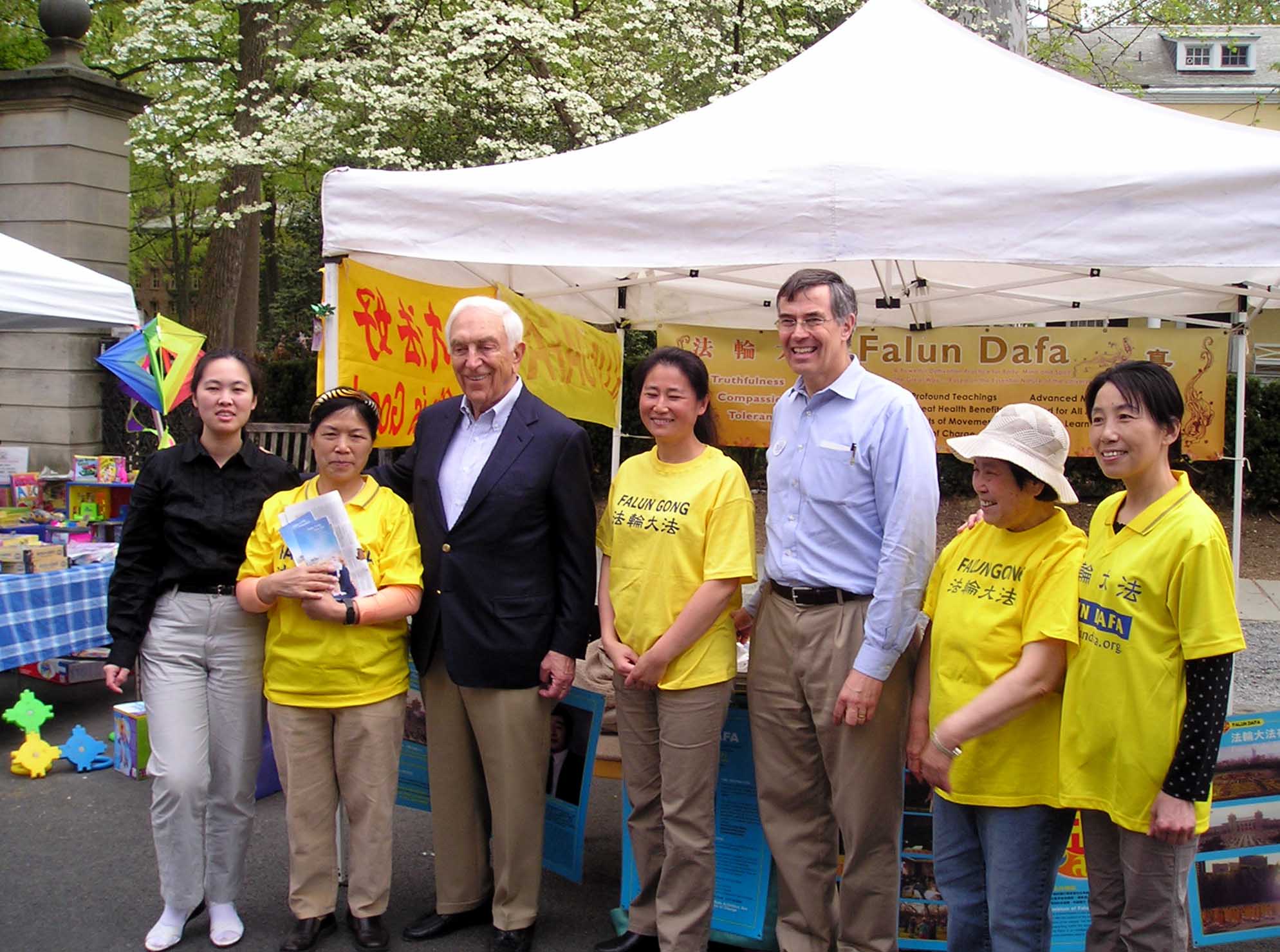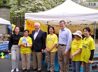 下午时分,前来参加该社区艺术节的新泽西州国会众议员罗斯·浩特(Rush Holt)和联邦参议员弗兰克·劳登伯格(Frank Lautenberg)来到法轮功展位前。浩特众议员在出任国会议员前,曾任普林斯顿大学教授,他和参议员劳登伯格多年来一直坚定的支持法轮功学员反迫害的努力。