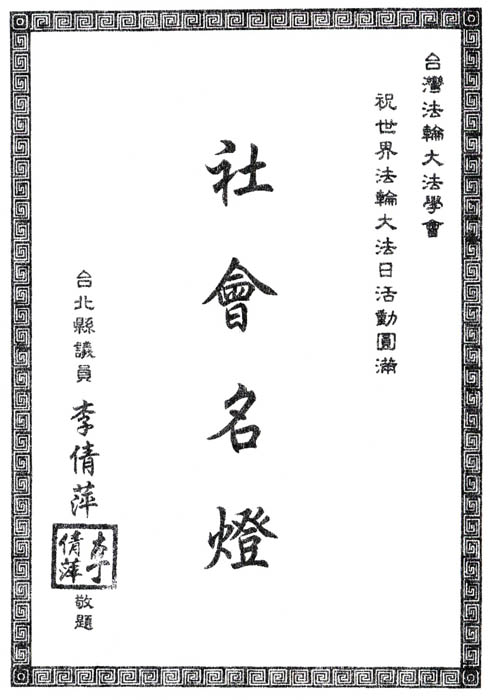 李洪志老师一九九九年六月在美国芝加哥领奖时表示,修炼的人早就把世间的名利看得很淡了,得奖对于他个人并没有太特殊的意义;但对于法轮大法来说,得奖的意义却很深远,因为这代表着世人和社会对法轮大法的见证和认识。本文社会褒奖篇将从以下几方面,略举台湾各界对法轮大法的支持。