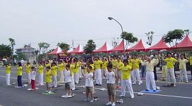 为了更大面积的让民众有机会接触大法,了解法轮功真相,学员们经常利用假日,在各地旅游名胜、捷运站、公园、广场、百货公司等人潮聚集处炼功。一群群或老或少,有男有女的法轮功学员,随着悠扬的旋律,缓、慢、圆的安详炼功,大法的美好逐渐传遍台湾的大街小巷。在台湾各地的民俗节日、地方庆典、学校运动会等活动中,当地法轮功学员规模盛大的功法表演更成为普受来宾欢迎的精彩节目,迭获主办单位颁发感谢状。
