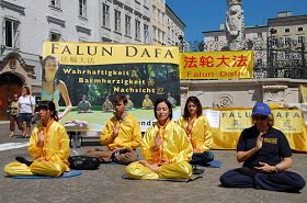 二零零八年五月十日,奥地利法轮大法学员分别在首都维也纳的闹市区广场Stephenplatz和著名的莫扎特故乡,萨尔茨堡的老城Altmarkt举行活动,庆祝世界法轮大法日。
