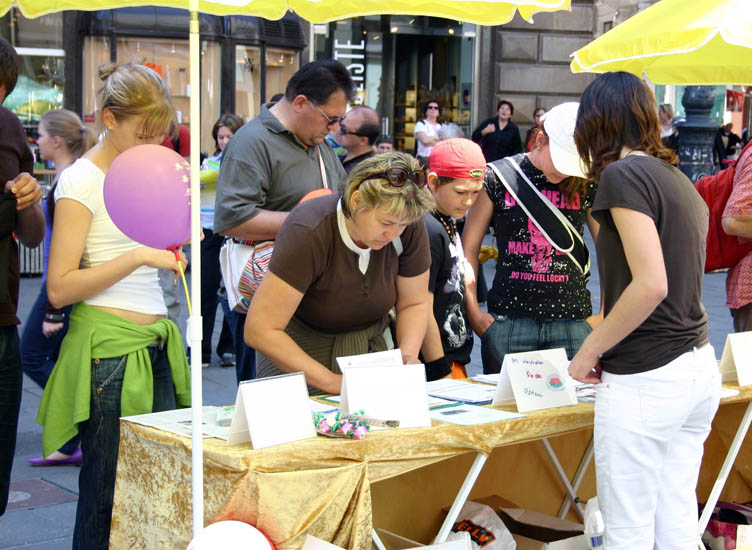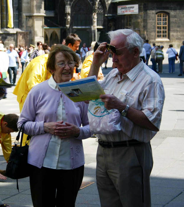 五月的奥地利,正是游人如织的季节。和往年一样,这两个最著名的城市,吸引着来自世界各地的观光客。奥地利大法学员在庆祝世界法轮大法日的同时,也借此机会,向全世界的游客和当地民众揭露中共持续近九年残暴迫害法轮功学员的真相。