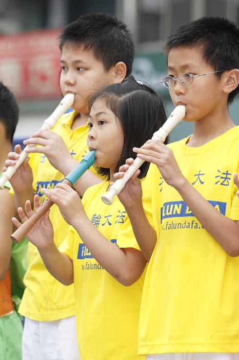 ![]() 小朋友以直笛吹奏“法轮大法好” |