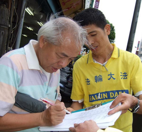 ![]() 路上有正义感的民众,踊跃加入支持反迫害签名联署 |