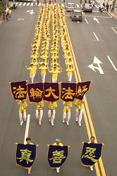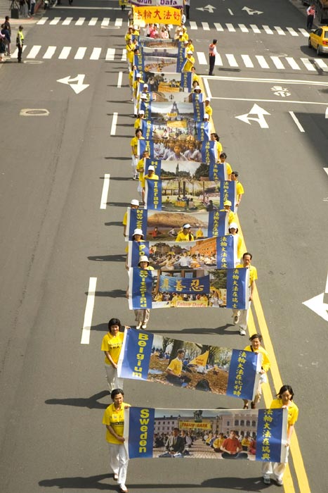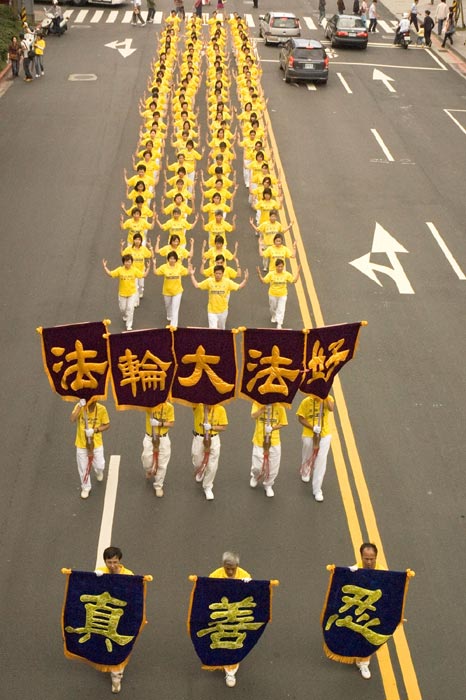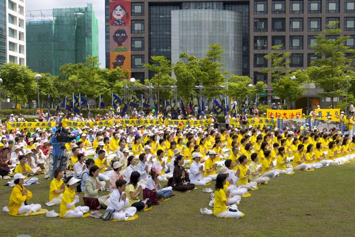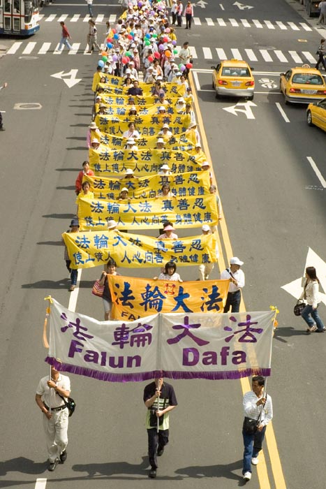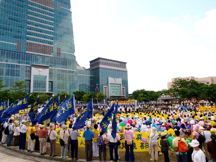 ![]() 大台北地区的法轮功学员于二零零八年五月十一日在台北一零一大楼对面的信义广场举行“庆祝世界法轮大法日”集会及游行活动 |