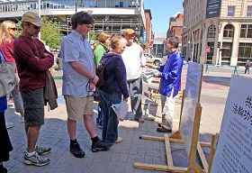 上午十一时过后,首先由新英格兰法轮大法佛学会代表致辞,欢迎中外人士多来了解法轮功。他说,“知道真相是福份。希望大家记住法轮大法好,真、善、忍好,祝大家都有一个美好的未来。”