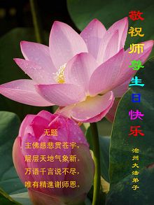 尊敬的师父,祝您生日快乐!您辛苦了!修炼大法十三年来,时时沐浴在师父的洪恩中。