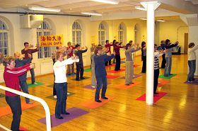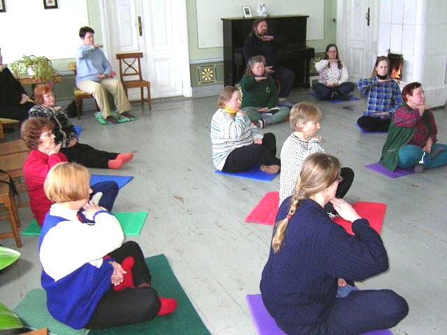 另一位二零零零年得法的,家住中部城市Jyväskylä的学员Sinikka,得法后就带着五、六岁的小儿子走遍了二三十个大大小小的城市洪扬法轮功,讲真相。其中免费教功就是一项重要任务。记得有一周她在Jyväskylä就办了两次教功班,都是利用晚上下班后,第一天二十一人,第二天八人。