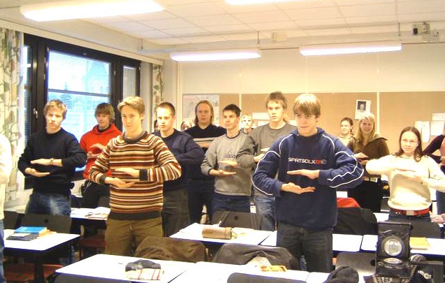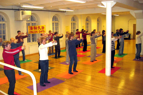 ![]() 在美国工作的芬兰大法弟子在家乡的教功,有二十几个人在学炼 |
