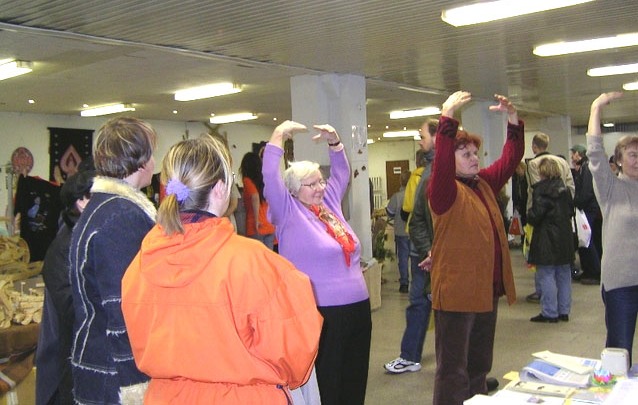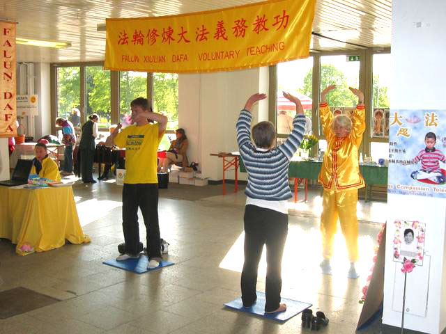 芬兰的华人学员,由于语言不通大都和西人学员配合教功,但有时也独立行动。其中有个小故事:一次,住在赫尔辛基远郊的一位华人学员,听说当地一位七十多岁的芬兰老太太从自己的信箱里得知大法信息,想要学功,她就找到老太太家,上门教功。神奇的是第一天教功,当炼第三套贯通两极法时,老太太示意她的右臂不能抬过头顶。但学员记得她在做第二套法轮桩法的头顶抱轮时右臂是可以抬上去的呀,学员就将她领到镜子前,先让她做头顶抱轮,成功了,再让她试探着做单手和双手冲灌,一下一下,终于成功了。老太太高兴极了,立即拿出钱来要给学员,学员表示不要,她又要送花,为了止住她想报答的心,学员只得拨通了西人学员的电话,请他给老人讲明法轮功是义务教功,分文不取的。后来学员才知道,老太太的右手臂已经很多年不能上抬了,而且经常疼痛,刚一炼法轮功,竟不知不觉的好了,能不高兴吗?