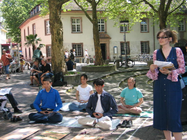 【明慧网二零零八年五月十五日】为庆祝法轮大法洪传世界十六周年和第九届世界法轮大法日,法轮功学员于二零零八年五月十日在德国弗莱堡市中心的弗莱堡大学旁举办了庆祝活动。