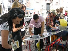人们纷纷签名声援法轮功学员反迫害