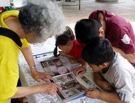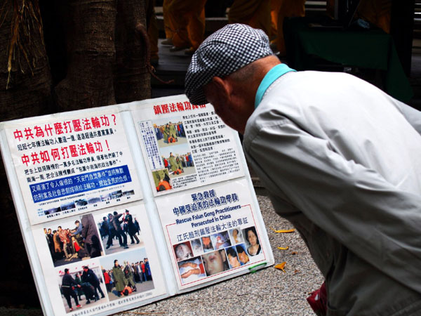 民众观看“法轮大法正法之路”组图,了解法轮功真相