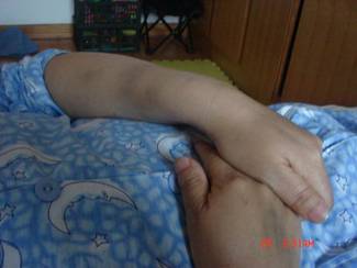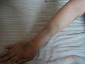 以下图片是张晶波被酷刑迫害后第十天后留下的痕迹: