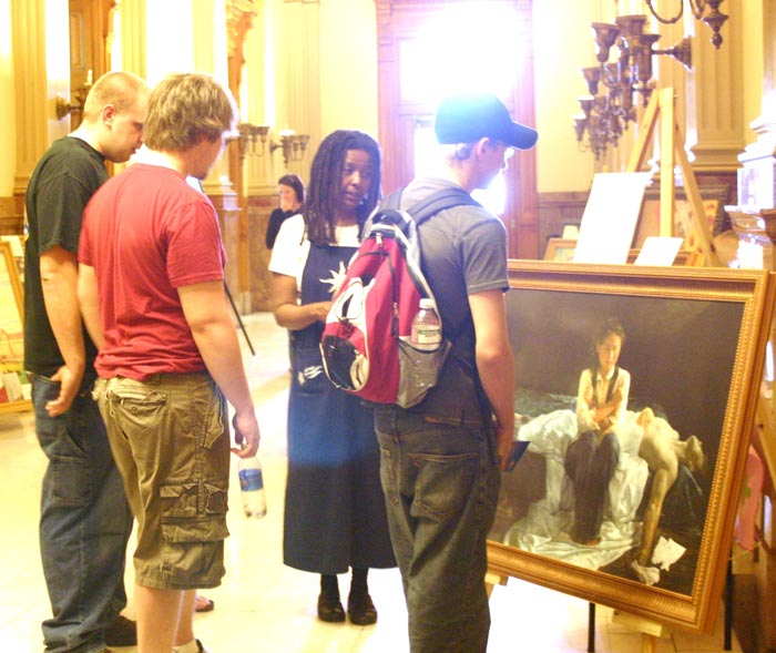 【明慧网二零零八年五月二十一日】在美国科罗拉多州政府大楼内,为期五天的真善忍国际美术展于二零零八年五月九日圆满结束。为欢庆法轮大法日而举办的该项展览给高原都市的人们带来了深深的感动。
