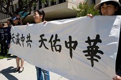昨天,在洛杉矶的中领馆的前面,他们就采取了流氓手段来破坏我们讲真相的活动。他们的理由就是目前是抗震救灾,什么都不准讲,你们讲任何事情都是破坏活动。