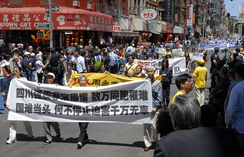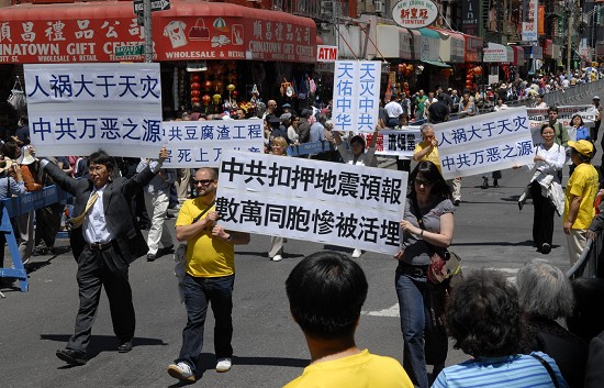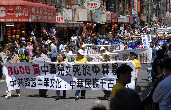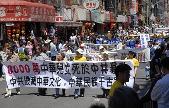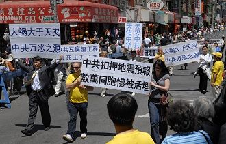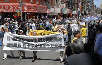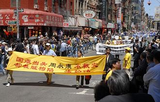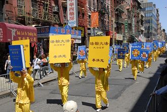 ![]() 浩浩荡荡的游行队伍行进在曼哈顿唐人街 |
