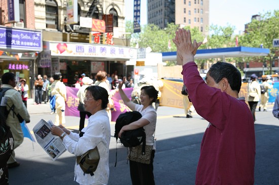 曾目睹中共特务在法拉盛煽动暴力攻击法轮功学员事件的华人艺术家莉莉,特地从法拉盛赶来为法轮功游行加油打气。她说,以前对法轮功不太了解,看到中共在美国这个民主社会居然也动用这么暴力的方式对付法轮功学员,她相信中共在中国大陆对付法轮功学员一定更不择手段。她说,站在路旁看着游行的队伍,她拍手拍到手都红了,她表示,中共在海外鼓动暴力的行为,一定要把它揭露出来和严厉谴责。