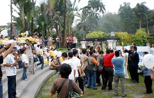【明慧网二零零八年五月二十八日】由「法轮功受迫害真相联合调查团(CIPFG)」发起的人权圣火传递活动于二零零八年五月二十五日抵达马来西亚首都吉隆坡。CIPFG在马来西亚的代表苏仁德(N. Surendran),代表马来西亚律师公会人权委员会的人权律师杨永健以及支持人权的民众参加了在吉隆坡的著名旅游景点湖滨公园(Taman Tasik Perdana)举行的人权圣火传递活动。众多媒体也前来采访。