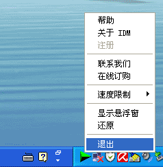 运行WYWZ擦除之前,退出IDM软件的方法,右键点击系统任务栏IDM图标,选择<退出>即可。