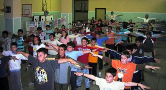 法轮大法洪传世界,被越来越多的世人所认识。西班牙萨拉戈萨市的一所公立学校的校长欣然同意可在学校的文化周上介绍法轮大法。师生一起学炼法轮功第一套功法学生们在看法轮