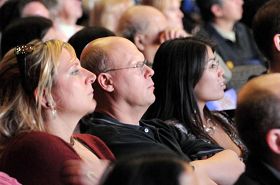 【明慧网二零零八年五月六日】(明慧记者祥瑞、荷雨加拿大埃德蒙顿报道)二零零八年五月五日晚,神韵艺术团全球巡演最后一站的首场演出,在埃德蒙顿著名的银禧剧院上演。被至善纯美的东方神韵所折服的约两千位现场观众,如痴如醉;当压轴的《威风战鼓》的隆隆鼓声戛然而止,全场鼎沸,观众起立,用经久不息的欢呼与掌声表达对神韵的热爱。许多华人观众深感振奋,纷纷表达对中国源远流长的传统文化的自豪。