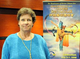健康顾问凯瑟琳·莫尔一家观看了神韵艺术团二零零八年五月六日在加拿大埃德蒙顿银禧剧院的第二场演出,经过神韵洗礼的凯瑟琳感觉已然溶在一片宁静和愉悦之中。