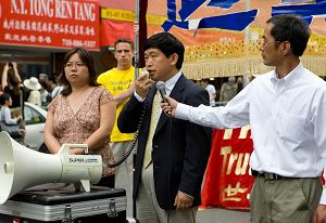 他最后指出,中国人都热爱自己的祖国,希望大家头脑清醒,维护祖国的形像。法轮功的朋友说,天灭中共,但我相信,实际上是中共在自灭!希望大家在美国生活的更好。
