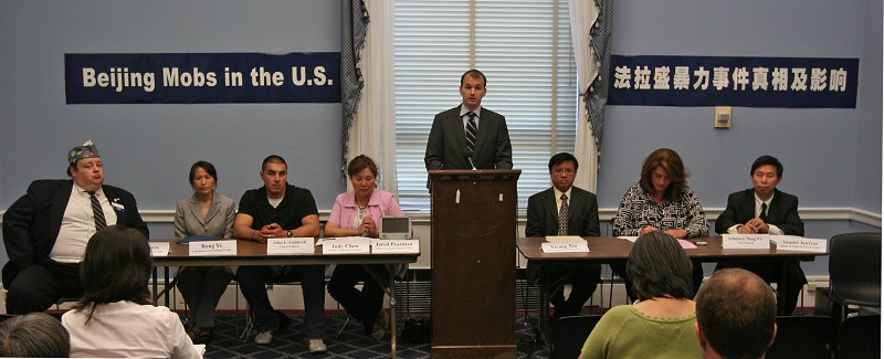 二零零八年六月九日下午,华府大纪元在美国国会众议院瑞本大楼召开“法拉盛事件真相及影响”新闻发布会,邀请国会议员办公室、退党服务中心、追查迫害法轮功国际组织、人权律师、美国退伍军人组织以及受害者代表,全面揭露中共在周永康的策划下,为转嫁中国国内危机,转移视线,从国内到海外配合式构陷法轮功,继续制造谎言煽动中国民众和海外华人对法轮功的仇恨。中共阴谋构陷法轮功的种种招数在美国国会曝光。