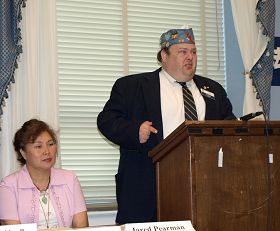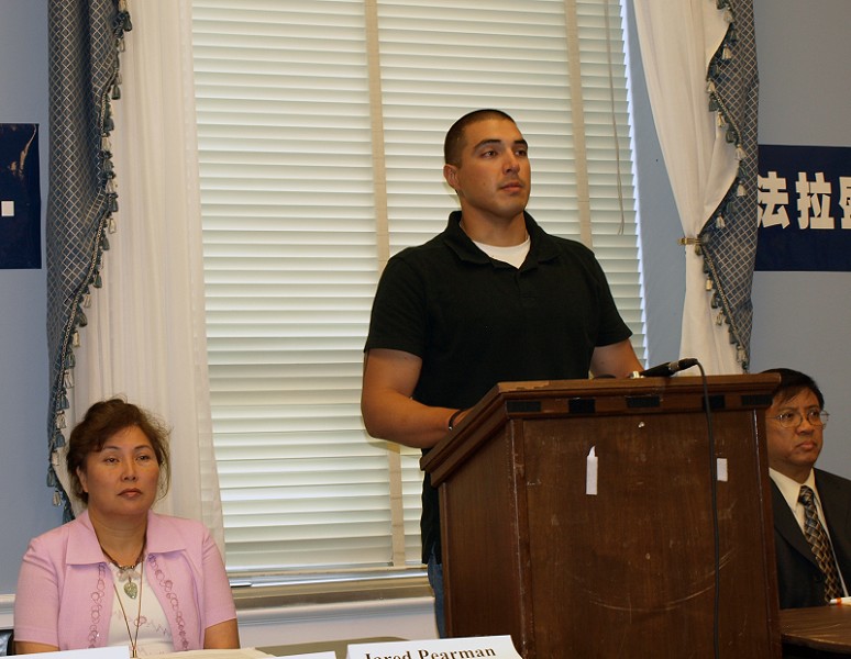 【明慧网二零零八年六月十一日】(明慧记者李静菲华盛顿DC报导)美国退伍军人组织——美国军团之子(Sons of the American Legion)司令奇普•拜尔斯(CHIP BYERS)六月九日在“法拉盛事件真相及影响”新闻发布会上说:“我们通常不会在这样的场合讲话,但是我们看到陈女士,当她的儿子保卫这个国家,外国政府的特务们却在攻击他的母亲,这个事件触动了我们,我们决对不能接受。中共特务袭击的是为美国服务的两位英雄军人的母亲。”