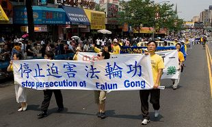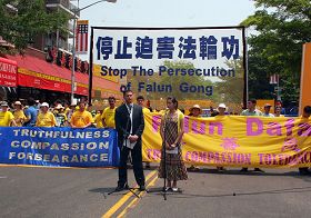 二零零八年六月十四日,约二千名法轮功学员及支持者于在纽约法拉盛举办盛大的反迫害游行集会,不少路人表达了对法轮功学员的支持,从事教育事业多年的法拉盛居民黄先生就是其中一位。