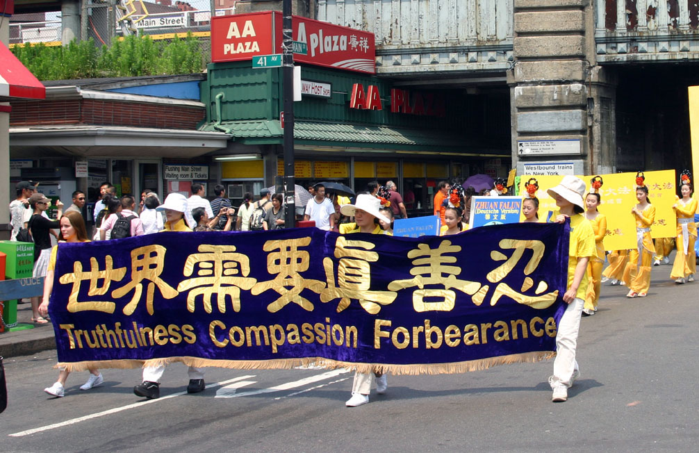 盛大的游行向民众展示了法轮大法洪传世界的历程,遵循“真、善、忍”法理的修炼者身心受益,道德升华,面对中共长达九年灭绝人性的迫害,法轮功学员坚忍不屈,坚持不懈的向民众讲真相。法轮功在海外获得了超过一千项褒奖与支持议案,据统计,到二零零七年五月十三日止,其他法轮功书籍已经被翻译成三十多种语言在世界各地发行;全世界有大约一百一十个法轮功网站,法轮大法洪传八十多个国家和地区。