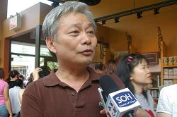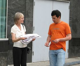在六月的骄阳曝晒之下,她一直静静的站在纽约华人社区法拉盛的街边,微笑着向每一位过往行人发送大纪元时报。