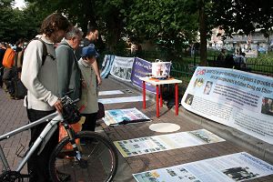 二零零八年六月十四号,法国里尔的法轮功学员在市中心的瑞克广场举行了洪法讲真相活动。