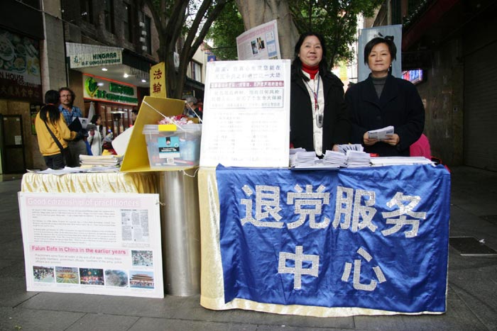 ![]() 悉尼退党服务中心帮助各界人士三退的摊位 |