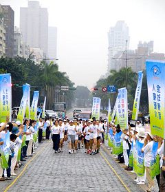 张同学开心的说:“一路走下来都不会感到累,觉的很有意义,还有看到台湾很多老老少少加入这个行列。我从网路得知很多有关这方面的讯息,中共血腥奥运一些很不好的行为被揭发,很多国家也是非常支持人权圣火,共同抵制中共对人权的迫害。”