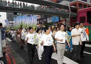 立法委员蔡同荣实际参与人权圣火的路跑(右一)