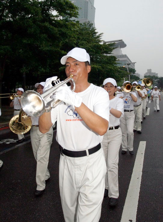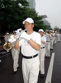 并非是法轮功的修炼者,从事管弦乐教学二十多年的江权治,负责教授天国乐团吹奏乐器,他脸上洋溢着喜悦的表示:“当从乐团团员处得知传递跨越五大洲、超过三十个国家、上百座城市的人权圣火传递至台湾的消息,我就下定决心一定要来。今天的活动很有意义,人权是现今人类的普世价值,每个人都拥有生存的权利,基本人权的对待,讲求民主自由与和平共处,不应该有迫害。”