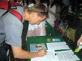 从南斯拉夫来台湾旅游的游客,在了解活动的意义后,签名呼吁立即制止中共迫害法轮功。