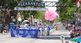 六月二十一日,加州美西天国乐团首次参加在普莱森顿市举行的“阿拉米达县园游会游行”,为当地民众演奏了“法轮大法好”、“法鼓法号震十方”等曲目,这一百多人的军乐队经过之处,许多人发出持续不断的掌声。