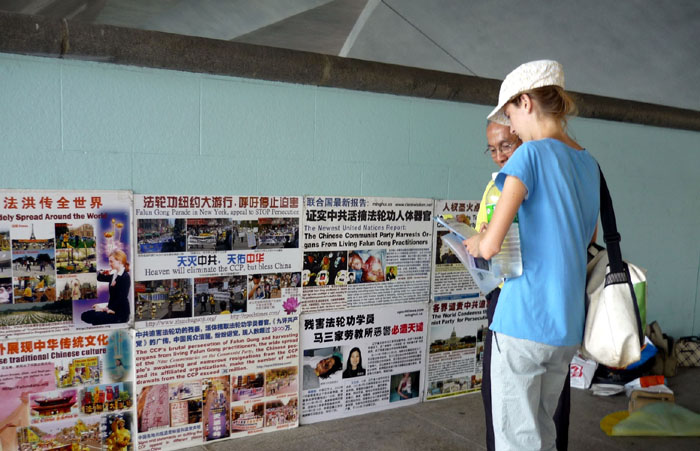 面对中共解体前回光返照的迫害,新加坡法轮功学员坚持在户外讲真相,并同时把中共在纽约法拉盛制造暴力事件的真相告诉本地居民及来自大陆的中国同胞。刚于三个月前拿到新加坡居民证的华人李博士气愤的谴责中共贪污人民给地震灾区灾民的捐款;知道真相的华人女士拍着法轮功学员的肩膀,对学员所做的一切给予有力的肯定,并鼓励说“中国共产党肯定垮台,你们辛苦了”……