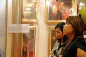 该百货公司的购物人群非常可观。人们纷纷在画展前驻足。一位来自日惹的男士说他刚到达雅加达,在等待他妹妹到来期间顺便逛逛街,正好看到这场展览。他表示说这些画都非常美,而他最喜爱的则是董希强所创作的“圣任”。看到法轮功学员的这些艺术作品,他说这个功法必定含有不寻常的境界。