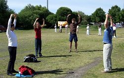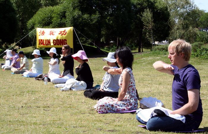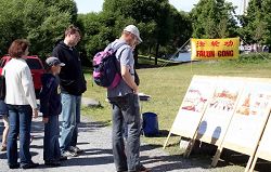 进入夏日以来,为了让更多的民众了解法轮功真相,瑞典法轮功学员总是利用周末假日的机会来到这个著名的旅游景点旁洪法炼功、讲真相。当天上午不到十点,学员就挂上了醒目的横幅,摆放好展板,介绍法轮大法洪扬全世界的盛况,并揭示法轮功学员在中国无辜遭受的残酷迫害。学员们还同时进行法轮功五套功法的演示。