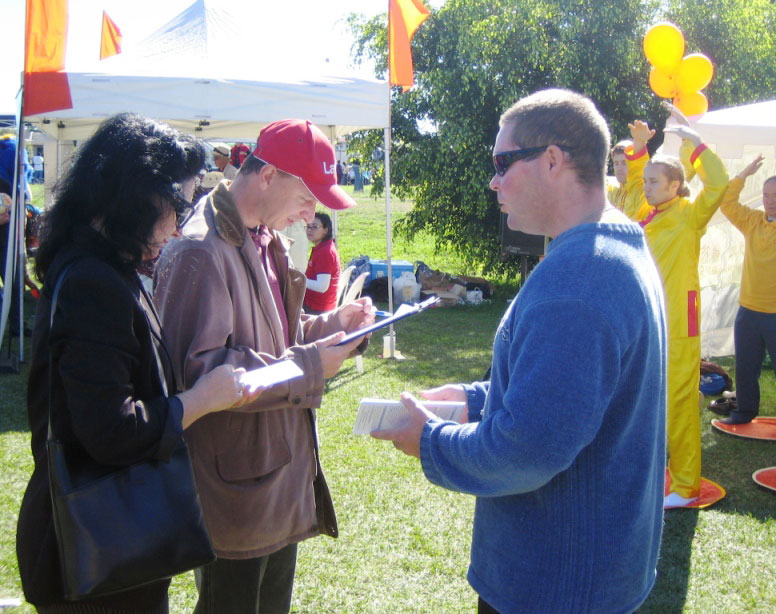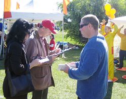 一整天的活动期间,驻足于法轮大法展位前的人络绎不绝,有的人前来学习功法,有的欲了解发生在中国的迫害真相,有些人则主动支持百万征签,签名反对中共对法轮功的残酷迫害。
