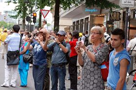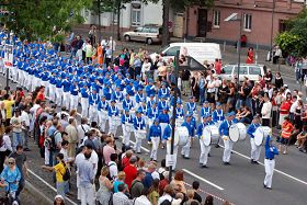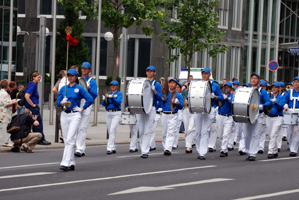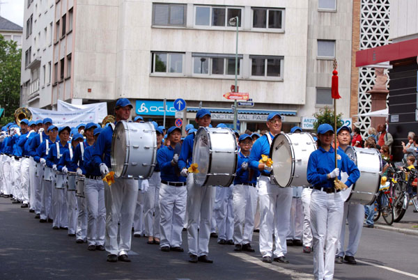 ![]() 欧洲天国乐团行进在法兰克福的大街上,给人们带来雄壮的音乐。 |