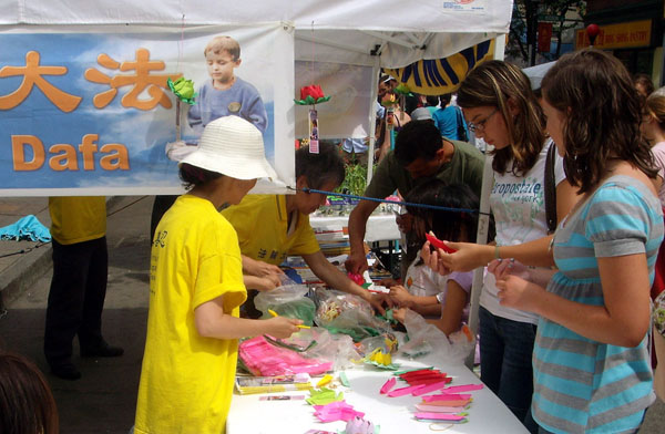 一些从大陆来的中国人原本不敢拿真相材料,他们表示怕回国探亲时遭到中共骚扰,但看到法轮功学员安详的炼功、善心的解说,和中共一贯的造谣完全不同,就来到法轮大法展位听取真相。得知中共迫害法轮功的实情后,他们表示敬佩法轮功学员不屈不挠的精神,愿意在《百万反迫害征签》表上签名,谴责中共对法轮功的迫害。