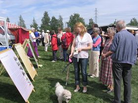 许多人走到法轮功学员的摊位前,有的看展板,有的欣赏学员舒缓的炼功演示,还有人当场学炼;更有很多人是被美丽的莲花引领到法轮功的展台前的。法轮功学员递上洪法传单,赠送莲花,讲解什么是法轮功、法轮功洪传世界和九年来中共邪党迫害的真相,吁请人们签名制止迫害。