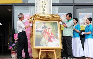 ![]() 与会来宾高基赞、谢志忠两位议员共同为《真善忍国际美展》代表画作“游行前夕”揭幕 |