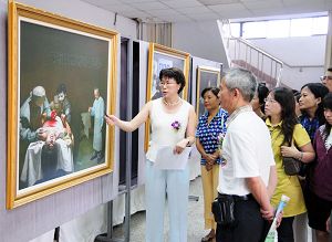 周怡秀说明,在画展中,部份画作所呈现的残酷与伤感,是呼唤人的同情心与正义感,而非丑陋;画家随着修炼的过程,技法上也越提升,人物传神的境界也超越了之前的创作;画作蕴藏深刻的感动力量,画家董锡强所创作的一幅画,表现一个小女孩手捧一个骨灰盒,眼神透露出的不知何去何从与茫然的感觉,就是超越语言可以表达的境界。