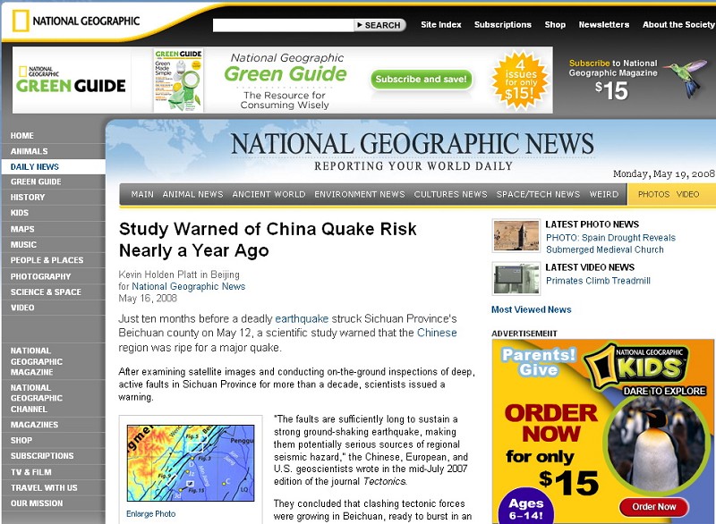 2007年7月,海外学术刊物《地壳》杂志发表《对西藏高原东边缘北川和彭灌断层频繁地质活动的研究》,指出:四川盆地有大地震的危险。